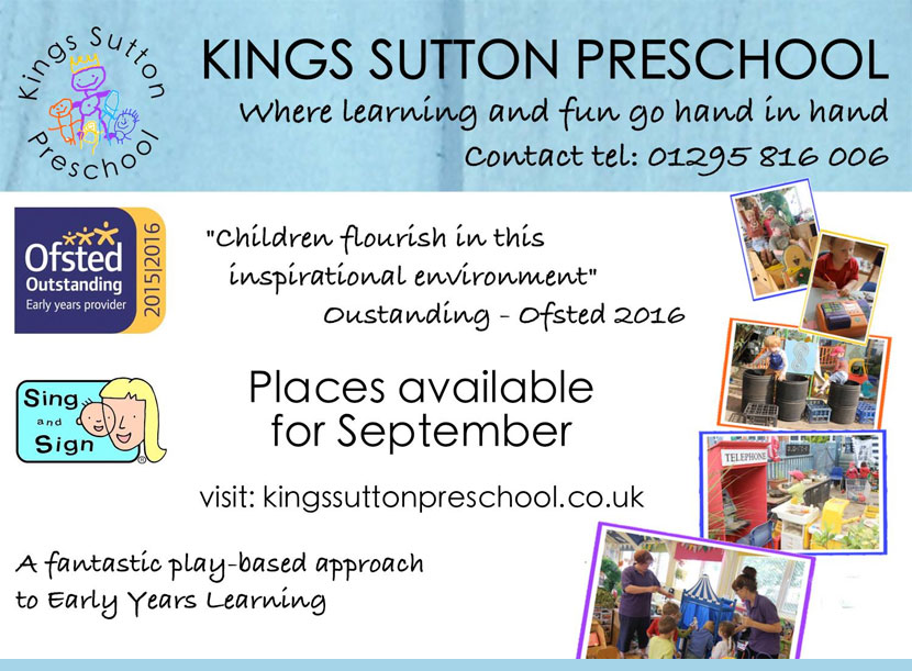 To find out more, visit the King's Sutton Preschool website or use the link below to send an email. Full contact details can be found here.